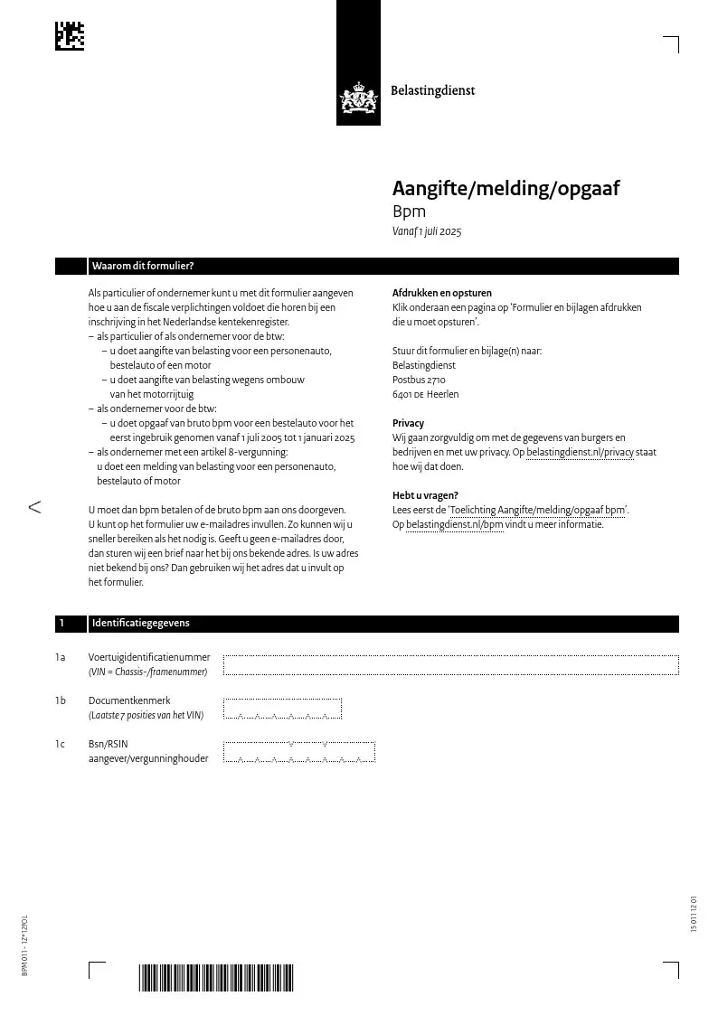 Binnen korte tijd ontvangt u een volledig BPM-aangiftedocument